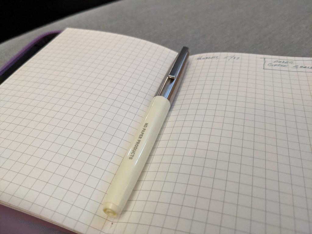 The Midori MD fountain pen is the newest on this list, having been released in the US earlier in 2021. This pen has a vintage design similar to a Parker 51 with a plastic/resin body and brushed metal cap. The body is cream colored to match your MD notebook, and the grip section is clear with a clear feed. The grip is matte plastic that’s subtly ribbed, and it feels nice to hold. The cap of the MD fountain pen snaps very firmly and feels sturdy. When capped, there’s no step between the body of the pen and the cap that makes for a sleek line. The firm medium nib has a unique downturn similar to a beak, and writes smoothly even at a high angle. The Midori MD fountain pen retails for $38 USD.