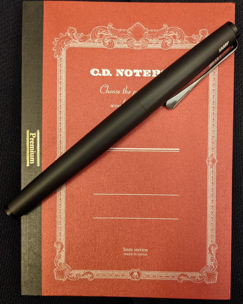 A bigger step up from the other pens on this list, the Lamy Studio caps with a short and sweet click. Equally (perhaps more) satisfying is how the pen clicks when being posted. This pen has a wide variety of special editions that range in price and materials. The Studio has a metal body with a unique propellor shaped clip, and has been released in several special edition colors. Most versions of the Studio come with a steel nib, but there are some that come with a 14k gold nib, at a higher price. The standard price is 80 dollars USD.
