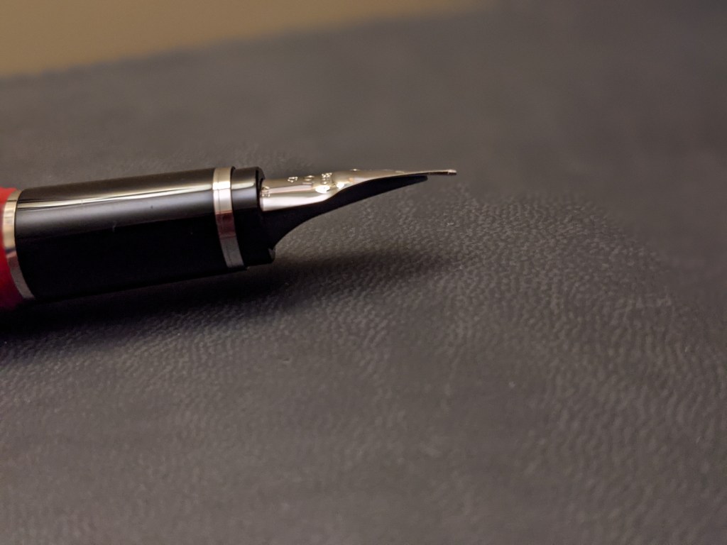 These nibs are not upturned like the previous examples, but the tipping material is rounded to be shaped like a ball. A kugel nib is smooth from most writing angles, and can be pushed across the page. Lamy used to make kugel nibs within the last 20 years, which can be found on eBay. Pelikan used to make kugel nibs as well, but they are harder to find. The only kugel nib that I have right now is a Lamy medium kugel, and it feels different from their regular medium nibs and even their left handed nib. It comes close to Lamy’s 14k gold nibs, but silkier.
