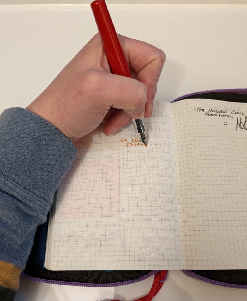 I got my Student as a Christmas gift a few years ago in red with a medium nib. Since then I’ve also tried a double broad nib, and am currently using a fine nib. This particular fine nib originally came on an AL Sport, but I like it so much that I just keep putting it in whichever Kaweco pen I’m using. Right now I have my Student inked with Colorverse String. In the past I’ve had issues with this pen drying out after leaving it unused for a few days, but this time the Student has been able to write even after sitting for four days. For the times that I’ve had flow issues while using this pen, I’m going to chalk up to issues with that particular nib unit and not the pen itself. While the cap seal on the Student isn’t as good as the Liliput, it does an adequate job.