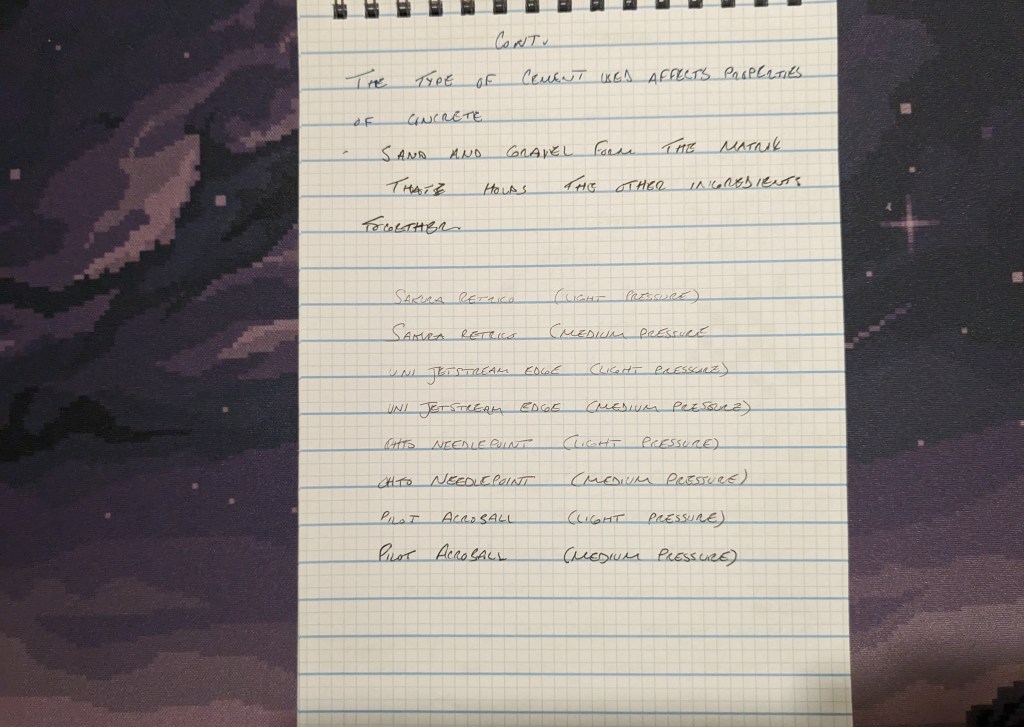 Overall, I like the Sakura Retrico. My experience with Japanese oil-based ballpoints is limited, but this one is quite satisfying to write with. I’ve come to really appreciate pens that can both write small and legibly with minimal pressure, and while the Retrico has the lightest line on my test page, the line is still consistent and precise. The tip has yet to feel blobby and pasty like some ballpoints can (lookin’ at you Ohto needlepoint), so we’ll see how the ink holds up over time.